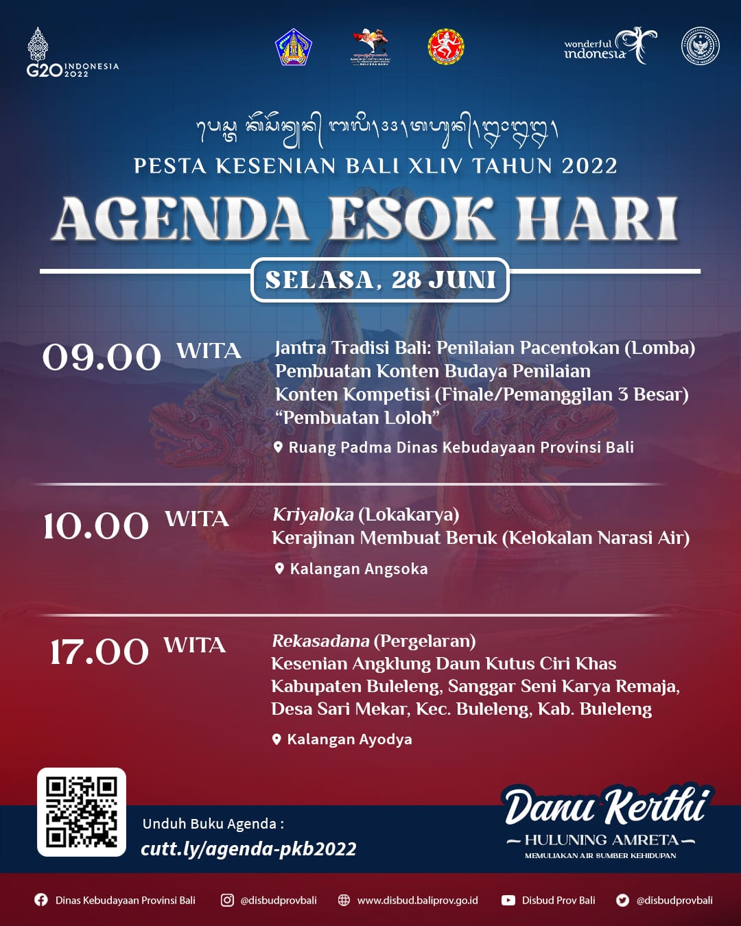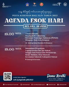 • Agenda Esok Hari di Pesta Kesenian Bali XLIV Tahun 2022. Selasa, 28 Juni 2022
