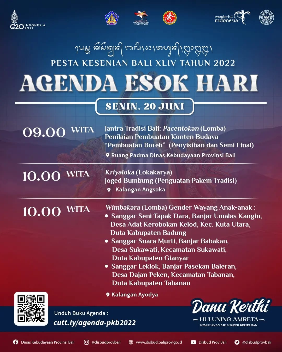 Agenda esok hari di ????? ???????? ???? ???? ????? ???? ??????, ?? ???? ???? Dicatat dan jangan sampai kelewatan ya semeton! Post navigation ????????? (?????????) Pesta Kesenian Bali XLIV Tahun 2022 ????? ???????. ????????? ????? ???????Pesta Kesenian Bali XLIV Tahun 2022. Agenda Hari Senin, 20 Juni 2022