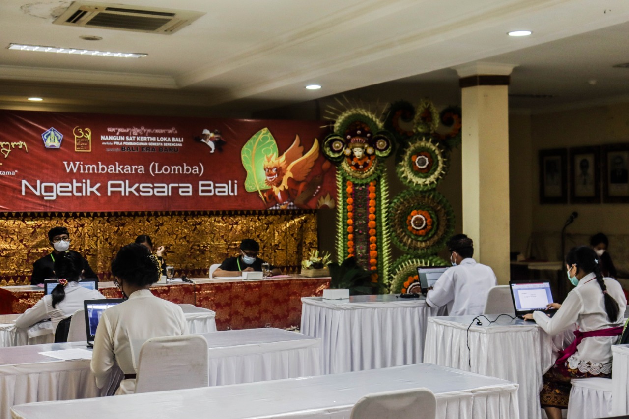 Jika sempat menyaksikan Wimbakara (Lomba) Ngetik Aksara Bali di Komputer serangkaian dengan Bulan Bahasa Bali 2021 di Ruang Cinema, Lantai I, Gedung Ksirarnawa, Taman Budaya Denpasar, Kamis 18 Pebruari 2021, pasti merasa senang dan bangga. Pasalnya, generasi muda setingkat SMP itu mampu menulis aksara Bali dengan teknologi canggih berupa laptop. Mereka tak hanya mengetik, tetapi juga terampil dalam menggunakan anggah ungguhing aksara sesuai dengan uger-uger yang ada.