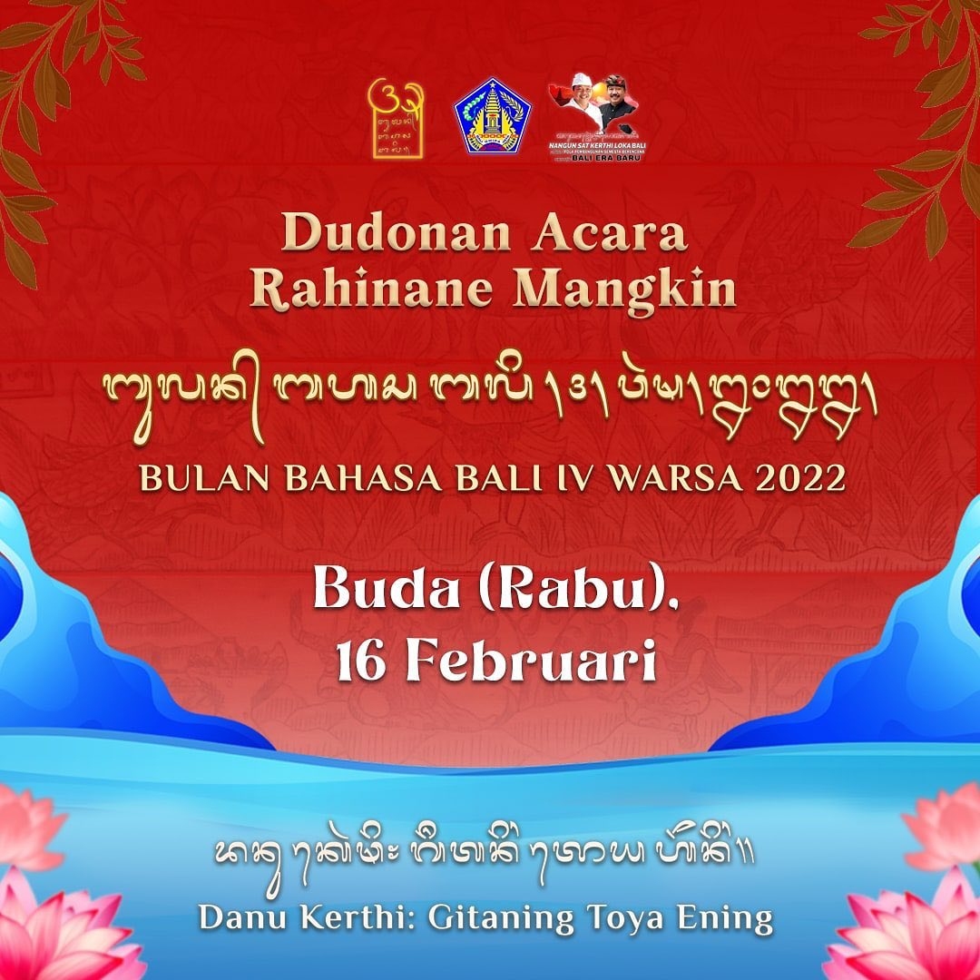 Dudonan acara rahinane mangkin, Buda 16 Februari 2022. #bulanbahasabali2022 #danukerthi #gitaningtoyaening Post navigation Dudonan Acara Rahinane Mangkin Bulan Bahasa Bali IV Warsa 2022. Anggara (Selasa), 15 Februari 2022Jayanti Wimbakara Nyurat Aksara Bali