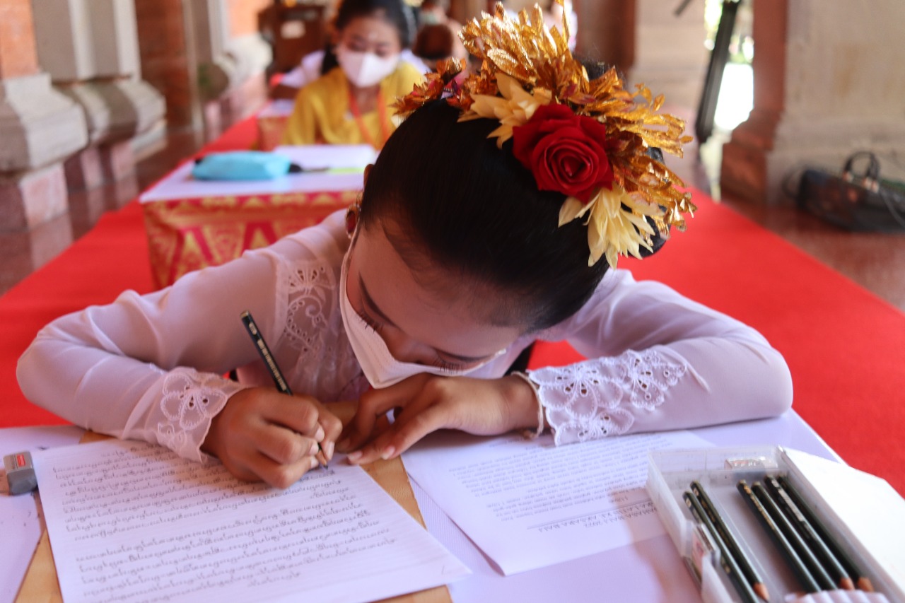 Lomba Nyurat Aksara Bali itu berlangsung di Gedung Mahosadi Mandara Giri Bhuana (MMGB), Taman Budaya Art Center, Propinsi Bali, Rabu (16/2/2022).