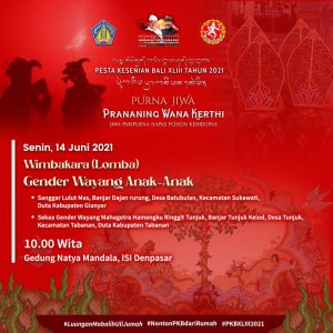 Jadwal Pesta Kesenian Bali XLIII Tahun 2021 hari Senin, 14 Juni 2021