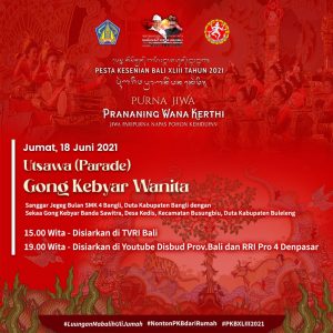 Jadwal Pesta Kesenian Bali XLIII hari ini, Jumat 18 Juni 2021.