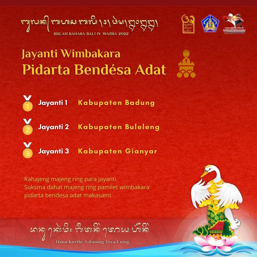 Suksma taler majeng ring pamilet wimbakara pidarta bendesa adat makasami. Malarapan antuk wimbakara puniki, dumugi basa, aksara miwah sastra druene prasida nglimbak tur lestari.