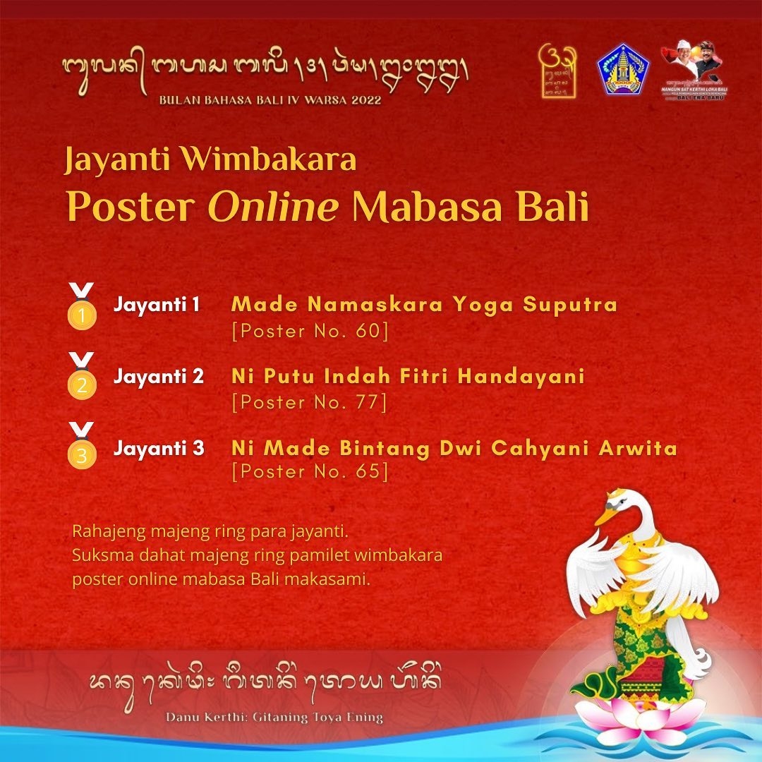 Suksma taler majeng ring pamilet wimbakara poster online mabasa Bali makasami. Becik-becik pisan poster druene.