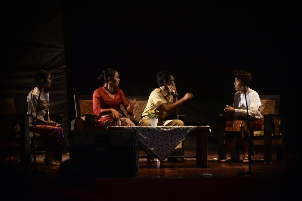 Sesolahan teater berdurasi 1,5 jam itu didukung sebanyak 12 pemain inti, dan 28 tim crew yang terdiri dari pemain musik, vocal dan stage crew. Dalam penyajiannya, para pemain berdialog secara langsung dengan menggunakan bahasa Bali. untuk memberikan suasana dalam setiap adegan, music pengiringnya menggunakan perbaduan antara music, seperti suling, gangsa, jembe kecil, gitar dan alat muasik lainnya. “Walau memakai music, tetapi tidak semua adegan ada musiknya. Itu karena kami ingin menonjolkan dialog pemain, dan mendukung suasana pada adegan tertentu saja,” kata Pimpinan Produksi I Komang Nara Dhananjaya, usa pentas.