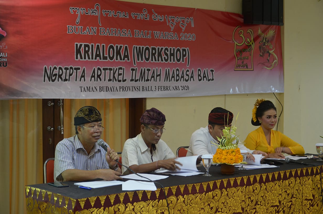 DENPASAR- Sejauh ini, penulisan artikel ilmiah mabasa Bali, masih tergolong minim. Guna menggaungkan penulisan mebasa Bali di kalangan remaja, mahasiswa dan masyarakat secara luas, Dinas Kebudayaan Propinsi Bali menggelar Kriyaloka (workshop) Artikel Mebasa Bali, serangkaian Bulan Bahasa Bali 2020, di Ruang Cinema, Gedung Ksirarnawa, Taman Budaya Bali, Senin (3/2).
