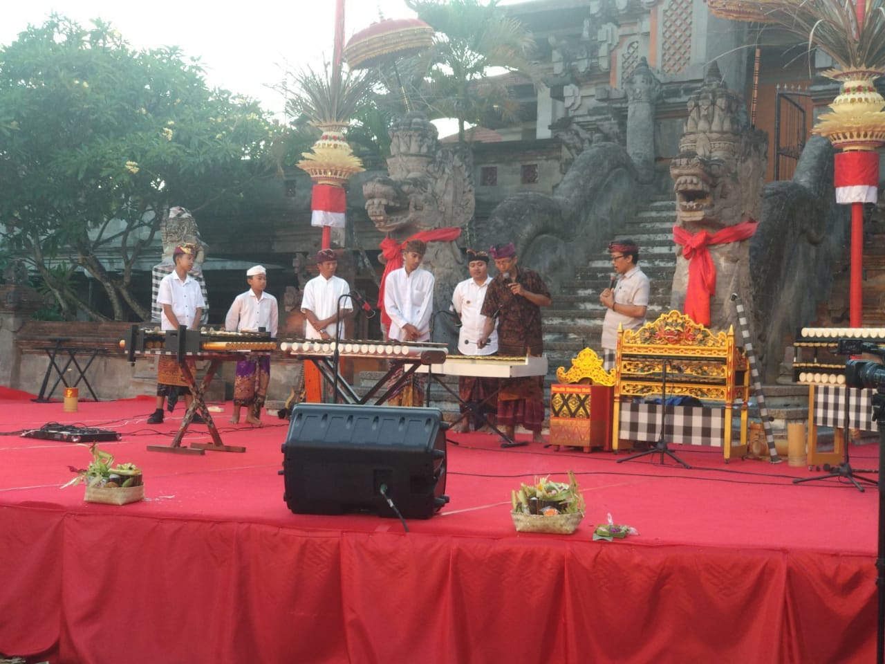 DENPASAR- Selain membawakan sejumlah gending- gending rindik khas Bali , karya inovasi Gus Rai juga memberi tip cara memainkan rindik dengan sederhana. Hal tersebut diperkenalkan dalam pagelaran Bali Festival Seni Bali Jani (FSBJ) 2019 di Penggung Terbuka Madya Mandala, Taman Budaya Bali, Jumat (1/11) .