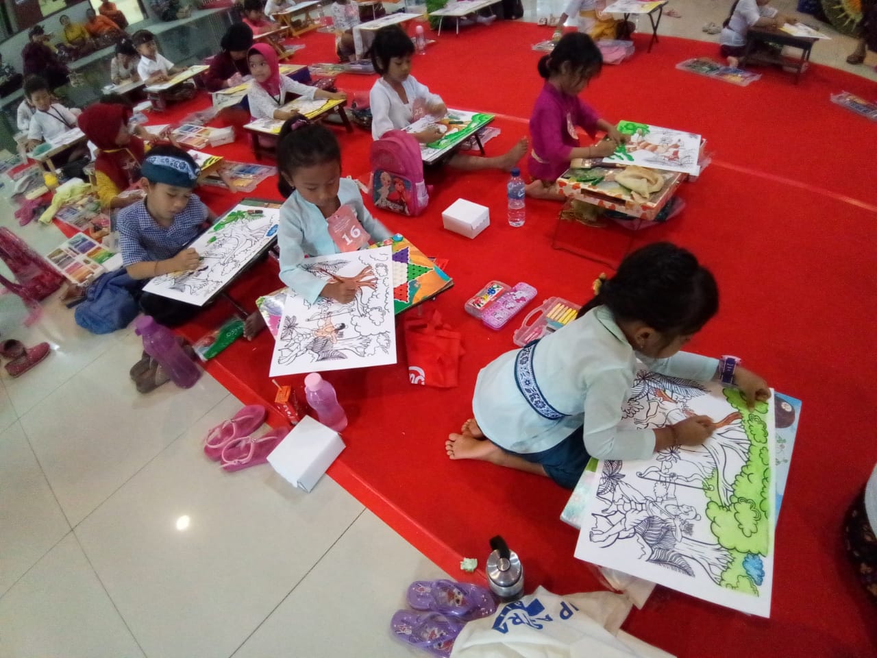 “Kalau lomba mewarnai itu biasanya diberikan durasi 1 jam, tetapi untuk lomba ini kami berikan waktu untuk menyelesaikan hingga 1,5 jam,” ucapnya.