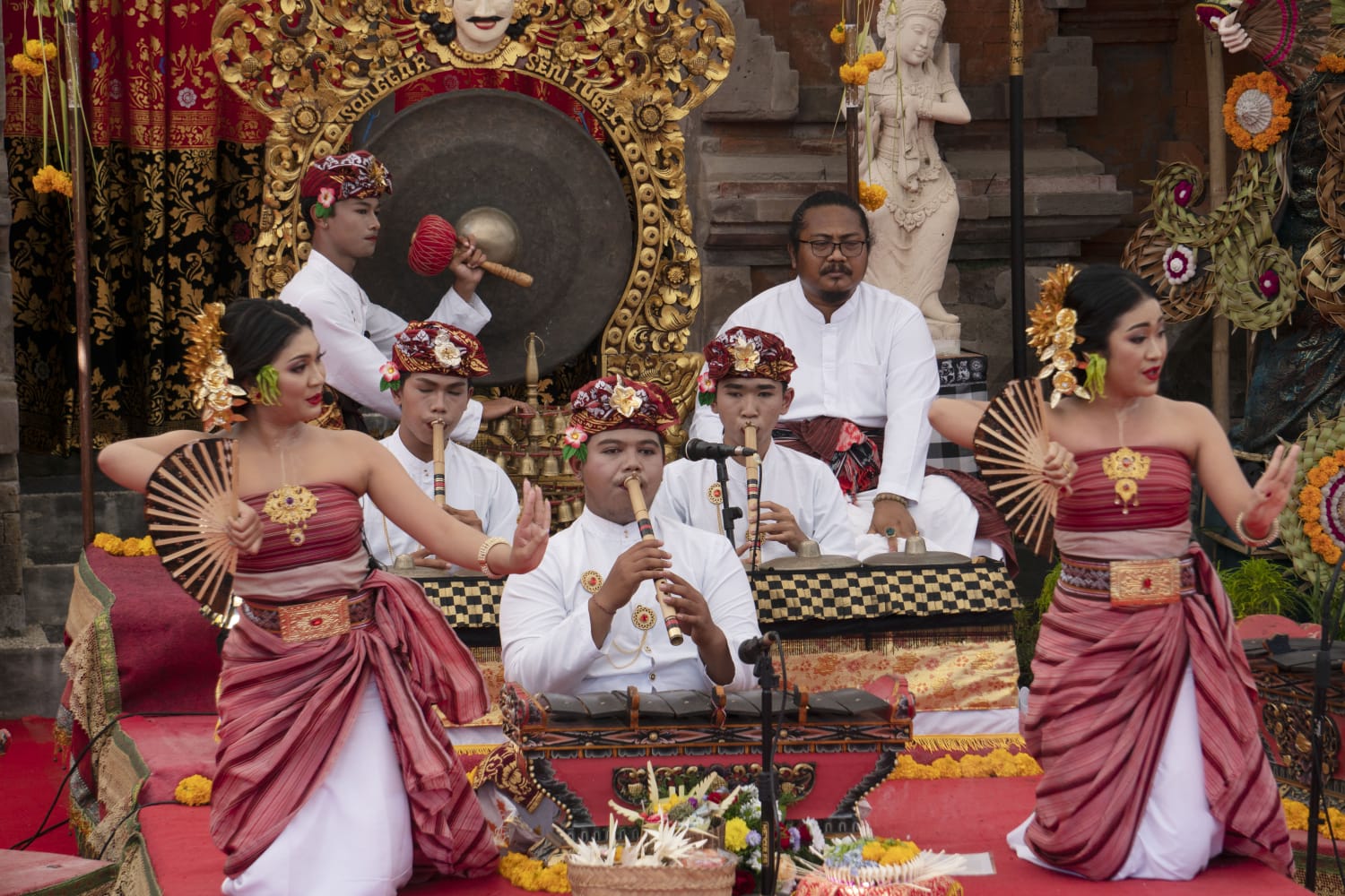 Pementasan yang menampilkan delapan orang penabuh, dua penari dan satu sendon ( nyanyian dalang) , mereka memainkan bilah-bilah selonding yang khas, hasil dari ekplorasi gamelan yang masuk katagori klasik dan sakral. Namun dalam garapan kali ini, selain perangkat selonding, juga dipadukan dengan alat musik berupa gamelan reong, suling dan satu buah gong gede.