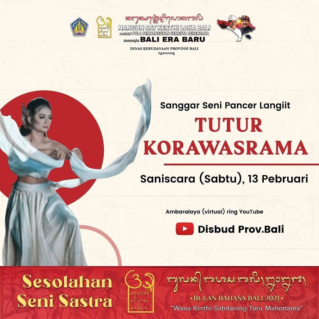 Ida Dane semeton Bali sane i wawu durung polih nonton sesolahan seni sastra saking sanggar seni pancer langiit sane mamurda Korawasrama, durus tonton ring kanal youtube Disbud Prov.Bali